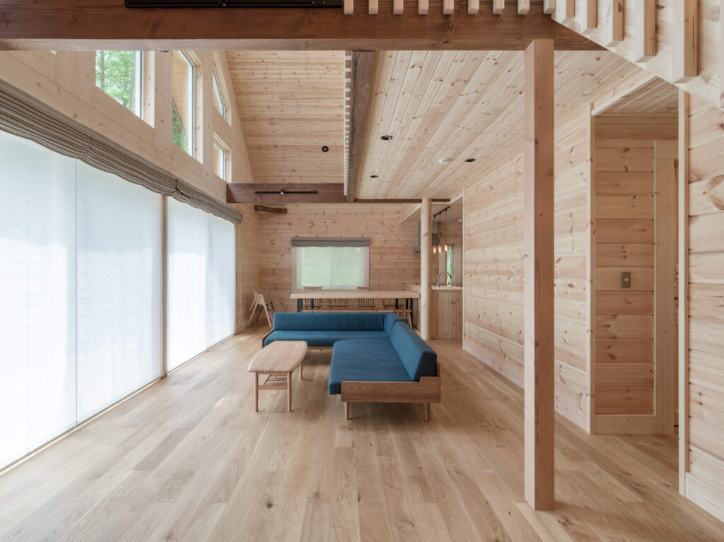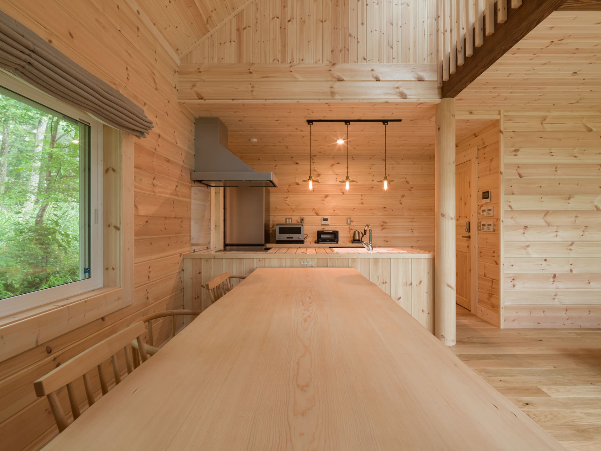 無垢の木の質感や、大きな吹き抜けのある開放的な空間が生み出す空気は、日常の住まいではなかなか味わえないもの。